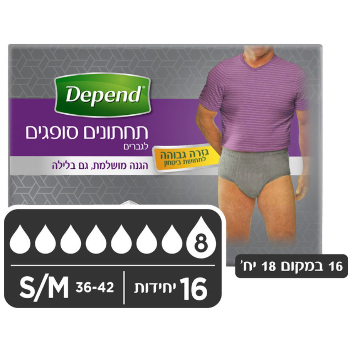 תחתונים סופגים לגבר DEPEND. למי הם מיועדים? מיועדים ומותאמים למבנה הגוף הגברי.